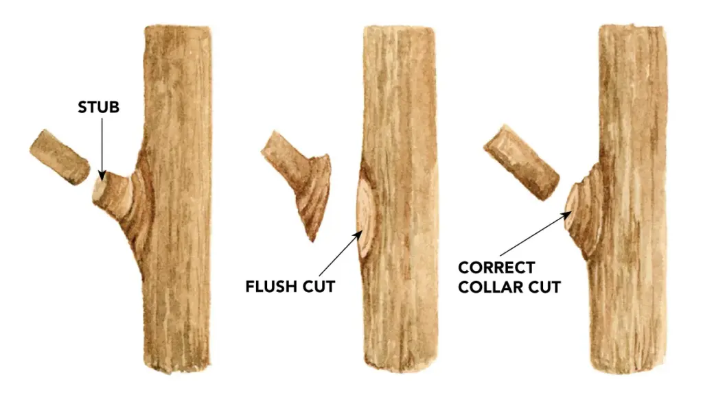 It’s not uncommon for trees to be trimmed using incorrect techniques that harm their future health and growth. This image shows a frequent trimming error that is not only unsightly but can even lead to the death of the tree.
